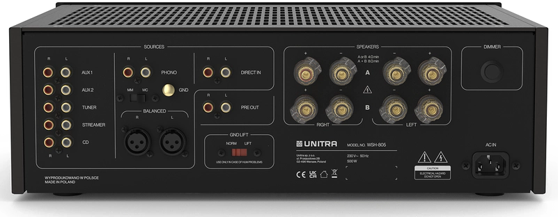 De inspiratie voor de WSH-805 was de legendarische Unitra WSH-205 versterker uit de gouden tijd van hi-fi in de jaren 70. Daarom is de WSH-805 volledig analoog, zonder digitale signaalverwerkingselementen die het originele geluid van het originele analoge signaal kunnen verstoren.